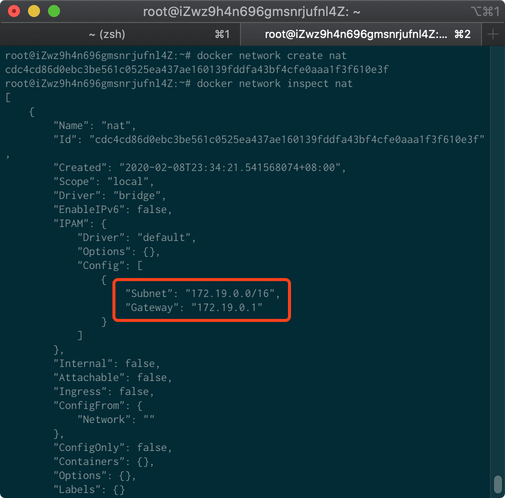 docker network inspect nat