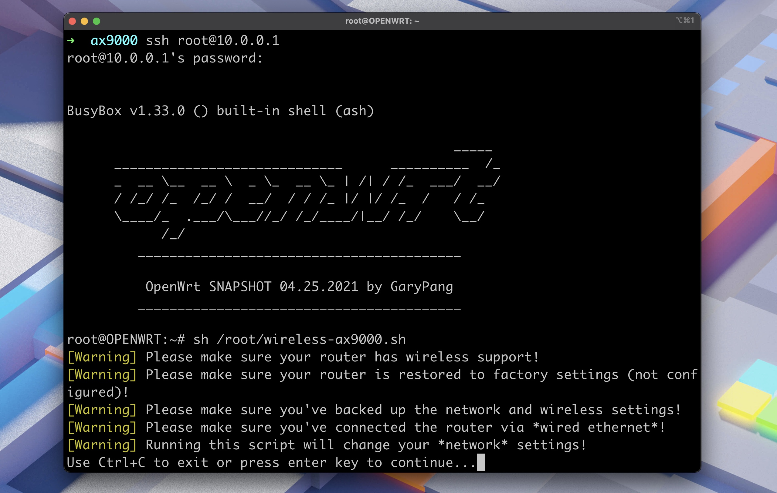 scp wireless-ax9000.sh root@10.0.0.1:/root/wireless-ax9000.sh