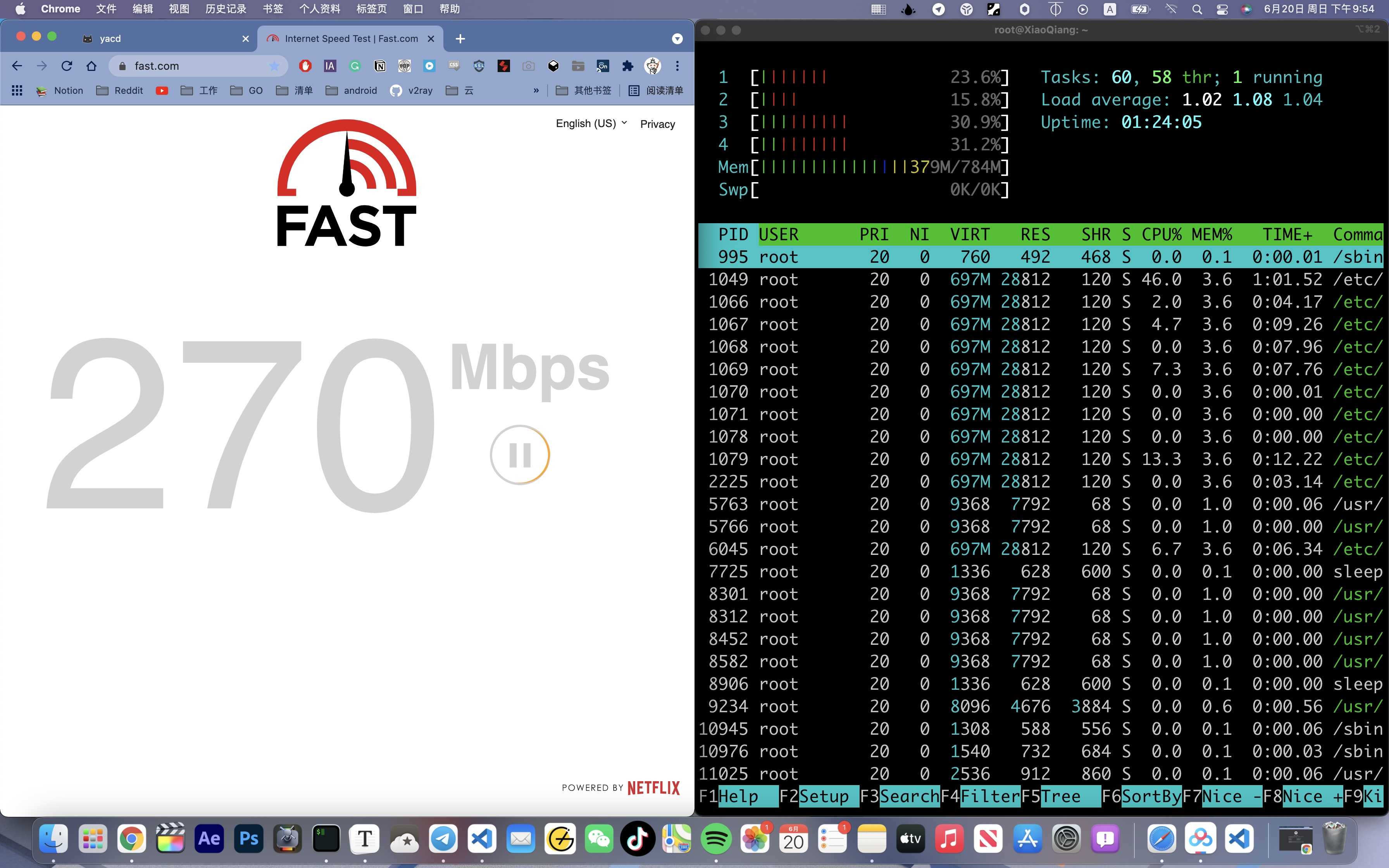 晚高峰,跑不上去,不过这性能跑 1000M vmess ws+tls 科学应该妥妥的。