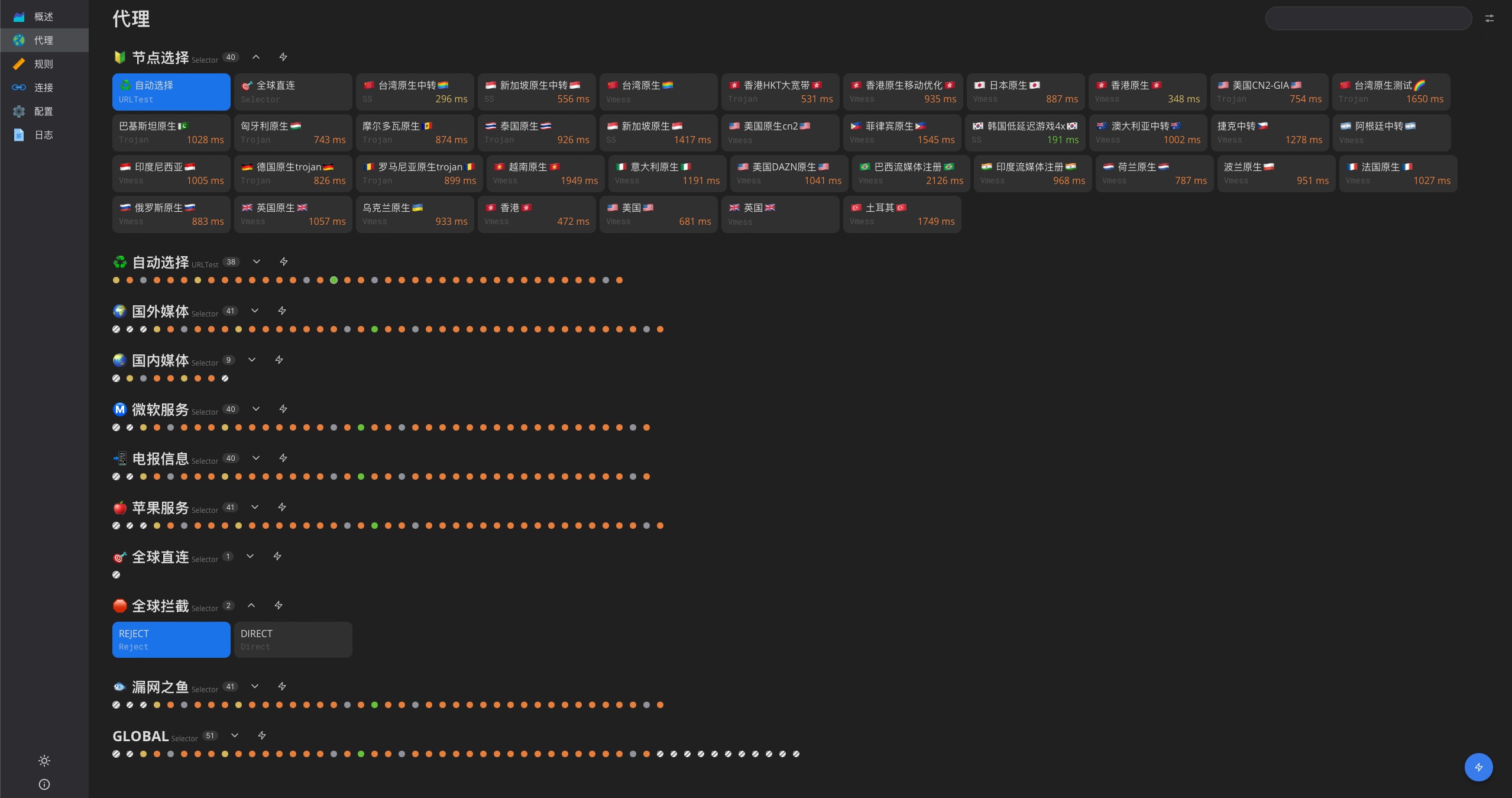 导入完成后应该就能可惜上网了,打开后台 http://192.168.10.1:9999/ui 你也可以切换节点等操作很方便。