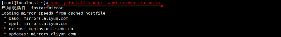 | 1 | yum -y install vim git wget screen zip unzip |