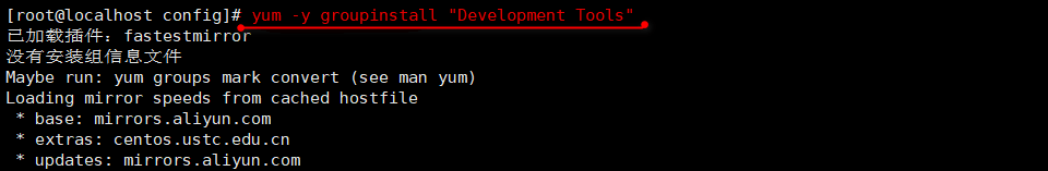 | 12 | yum -y updateyum -y groupinstall "Development Tools" |