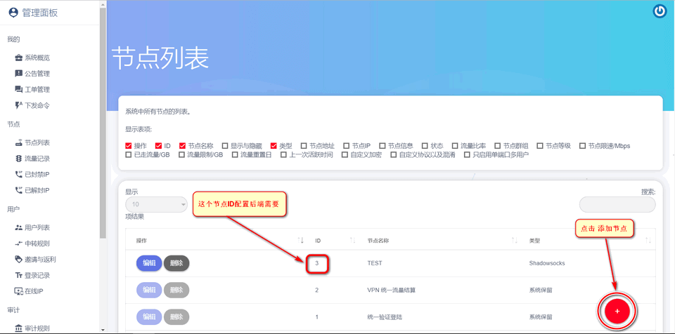 后端开始配置前需要先在前端面板上新建一个节点并记录好新建节点的ID稍后配置后端需要这个节点的ID在前端新建节点,我新建的节点ID是3