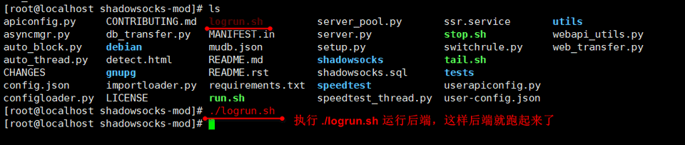 | 12 | cd /root/shadowsocks-mod./logrun.sh |